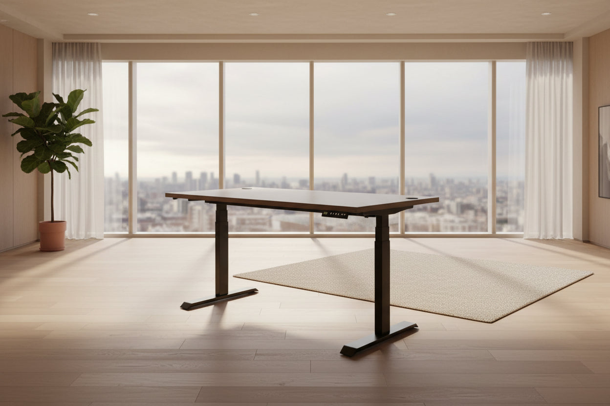 This is a beautiful mid-century style wood desk manufactured by Dunbar, designed by Roger Sprunger.  It is a cherry or rosewood top with a black base.  It has 3 drawers, all working, along the front edge.  There is wear to the finish at the location of where you would sit at the desk (see pics), but this desk still looks really beautiful.  It is 8 feet long, 43" across, and it is about 2 1/2" thick.  It has grommets on the top for cable management, and a black U-shaped laminate base.  The base has a channel for cables to run along it as well.  We are selling it for $1999.